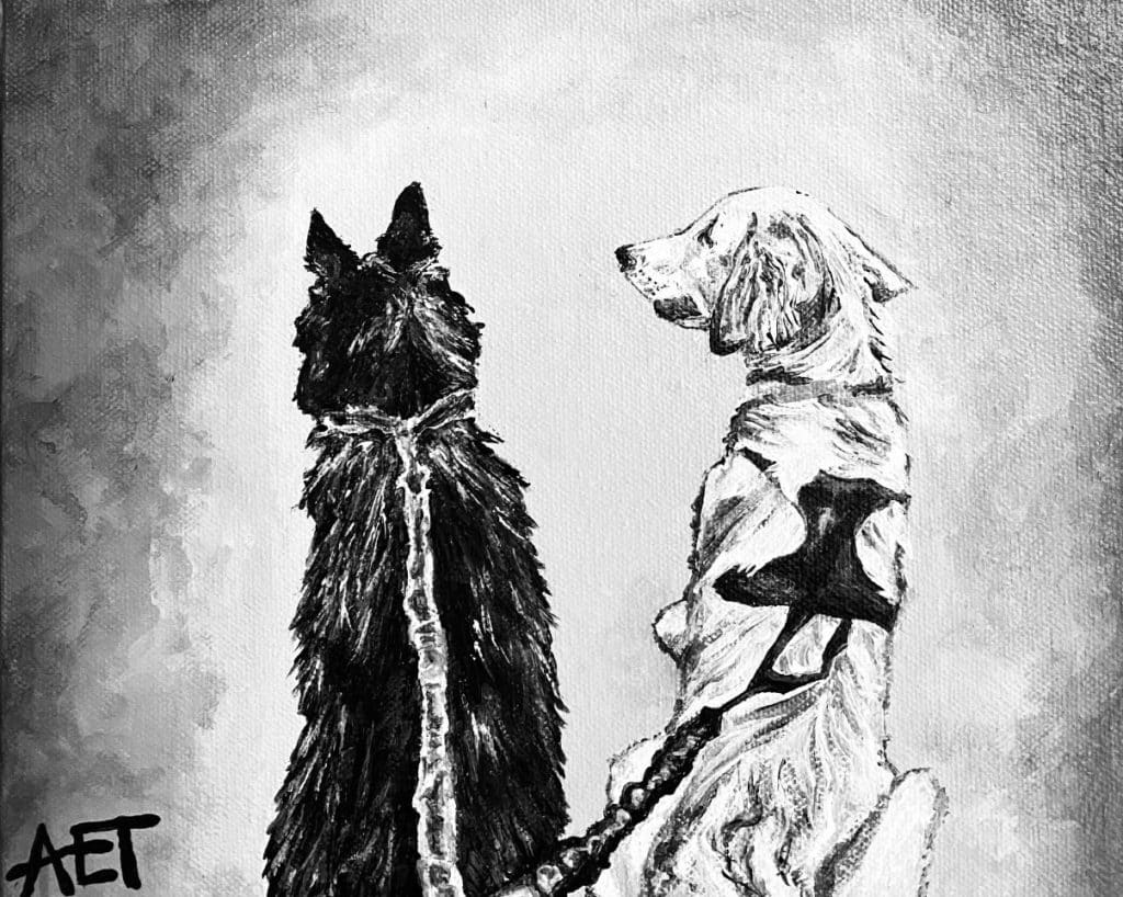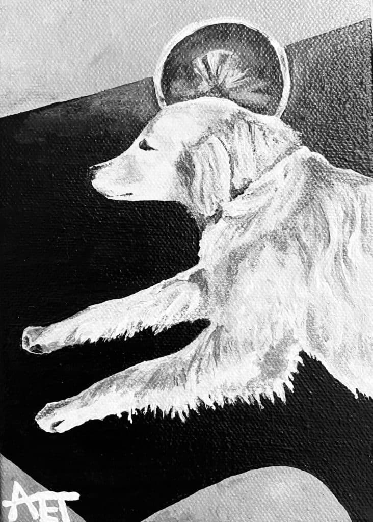 The Pups and People art and photography exhibit, held at the Bay County Public Library, highlights dog-focused paintings and photos from local artists. This 2025 early spring exhibit was extra special, as I had the unique opportunity to display my original works alongside my husband (Was and When Photography) as well as another photographer friend, Stacey Cromer (Captured Moments). Our artist reception and casual gathering was such a heartwarming way to connect and reminisce about our shared love of dogs.